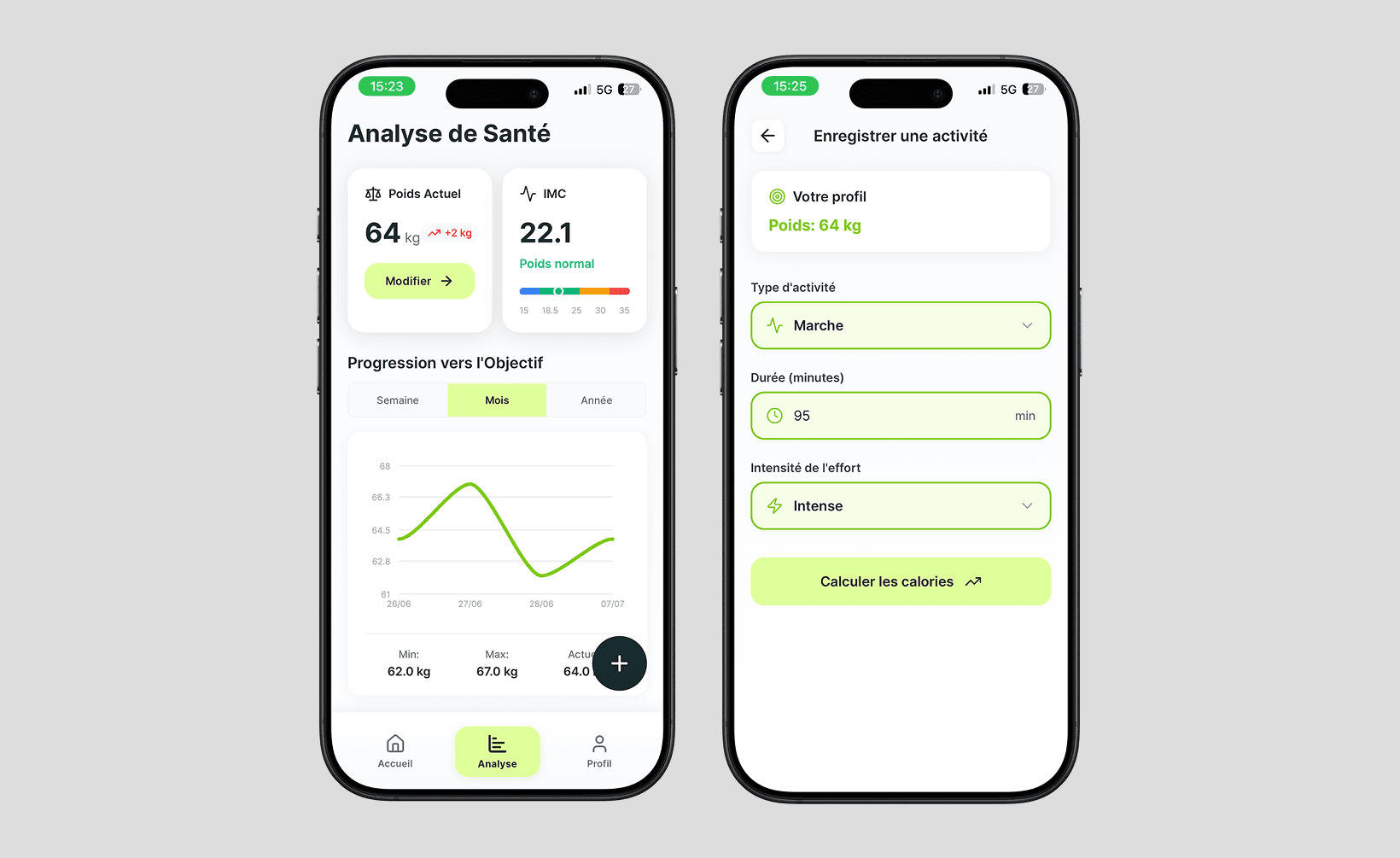 -> UX simple et motivante : chaque écran est pensé pour faciliter le suivi calorique et inciter à rester.